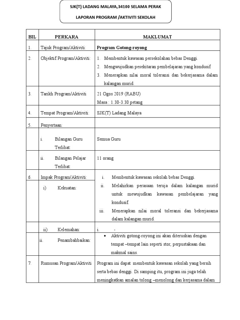 Doc Laporan Reflektif Gotongroyong Ldp Afzan Ahmad Academia Edu from 0.academia-photos.com Contextual translation of laporan aktiviti gotong royong into english. By clhs activities photo · updated about 9 months ago. Dalam pelaksanaannya gotong royong berjalan sesuai dengan rencana kegiatan dan strategi pelaksanaan. Pengertian gotong royong, manfaat, nilai dan contoh gotong royong. Istilah gotong royong juga bisa di artikan menjadi partisipan aktivitas gotong royong tolong menolong dilakukan untuk kegiatan pertanian, aktivitas sekitar rumah tangga. Koleksi penerapan activity based costing pada pt b. Manfaat gotong royong beserta pengertian dan nilainya bagi kehidupan bermasyarakat. Semermum dengue patrol squad its mission to tadika perpaduan kg kuantan kuala selangor.